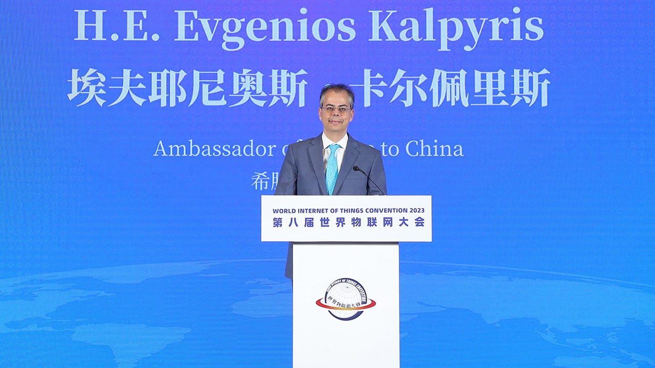 希腊驻华大使埃夫耶尼奥斯·卡尔佩里斯(Evgenios Kalpyris)在致辞中表示“AI和IoT让我们整个的世界能够更加的互联,更加的智能,让我们每日的生活变得更加的智能化和数字化”。