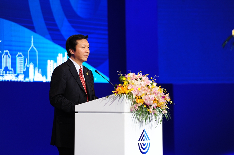 The Mayor of Qingdao Meng Fanli delivered a speech